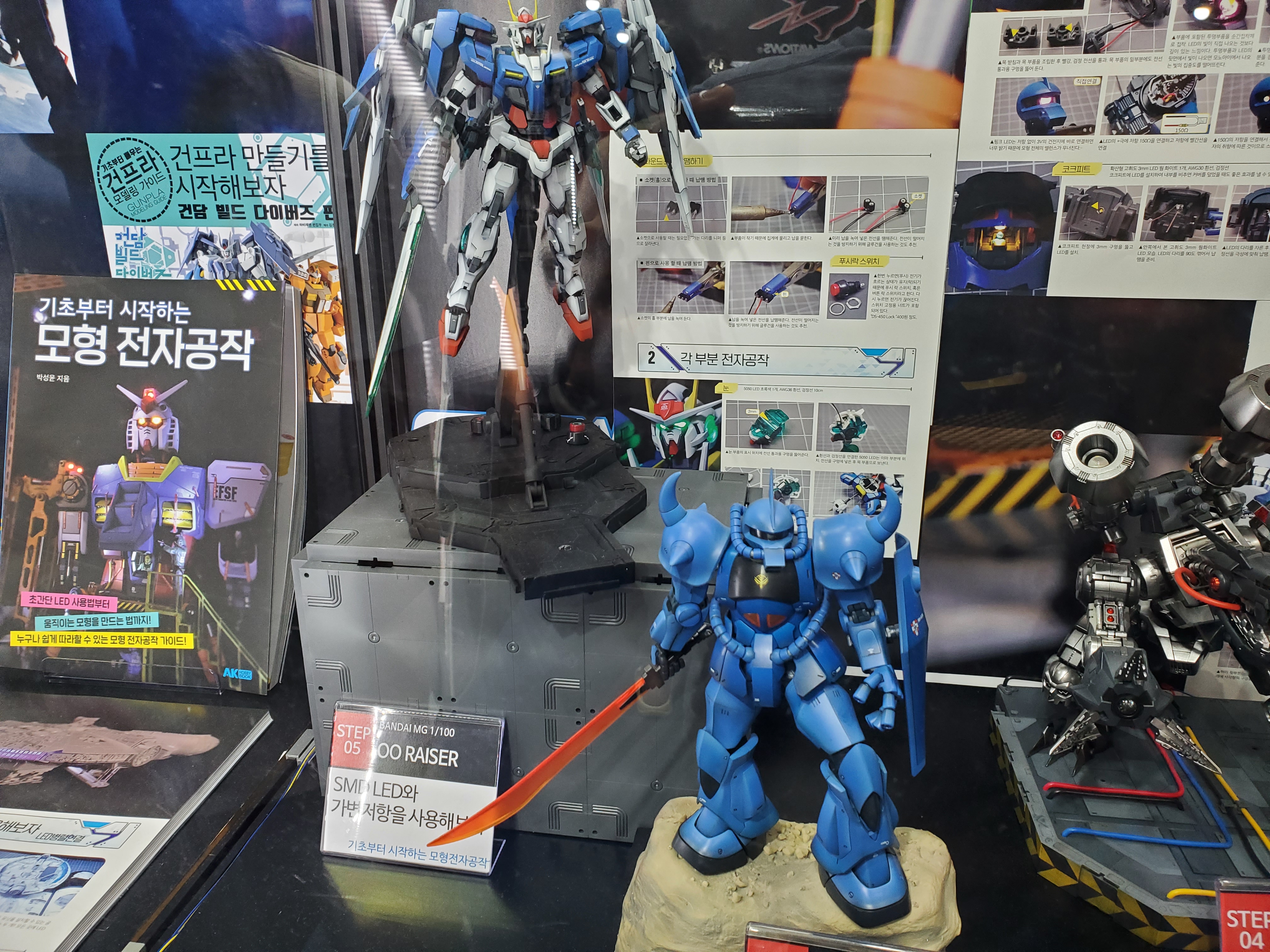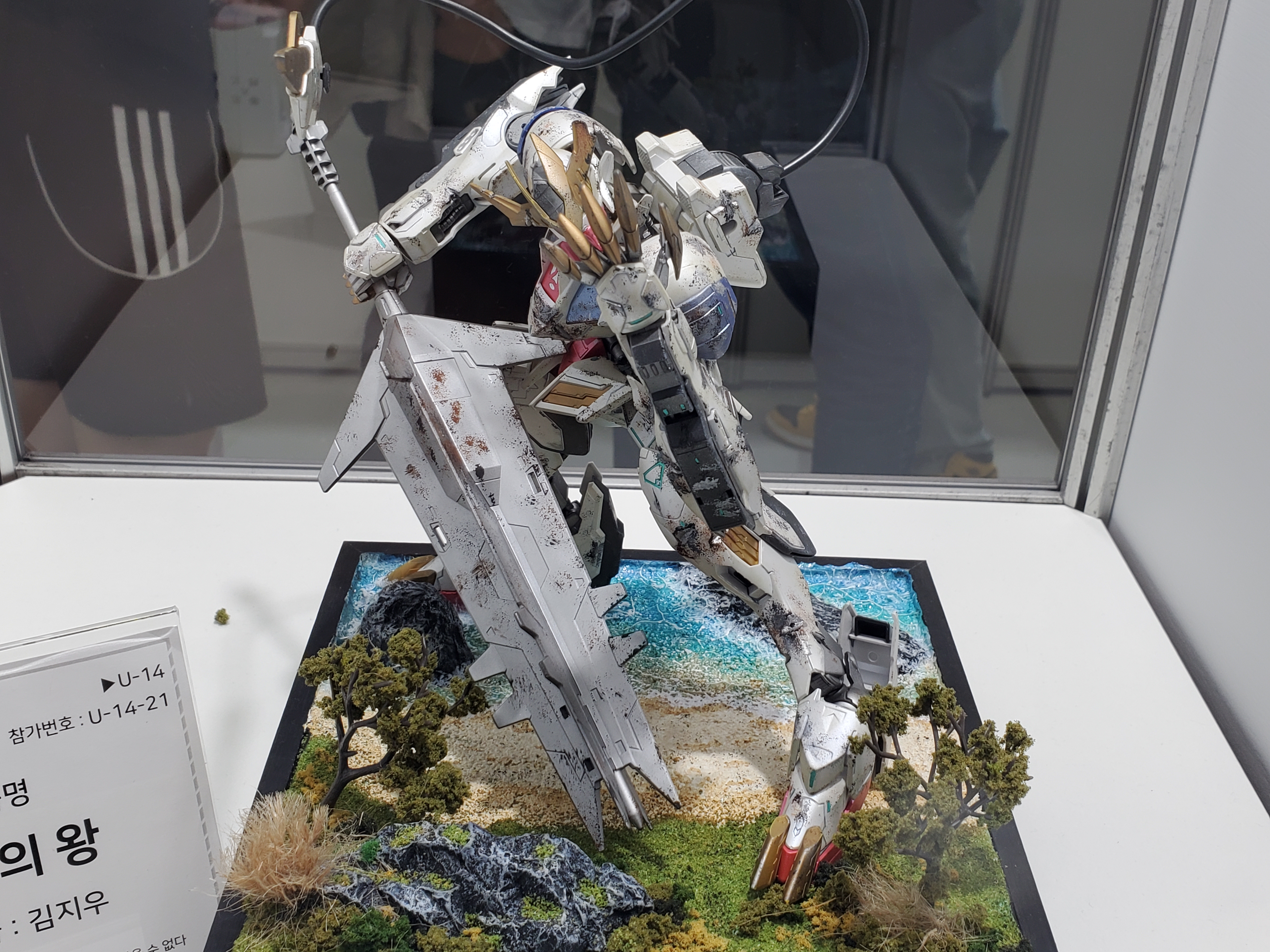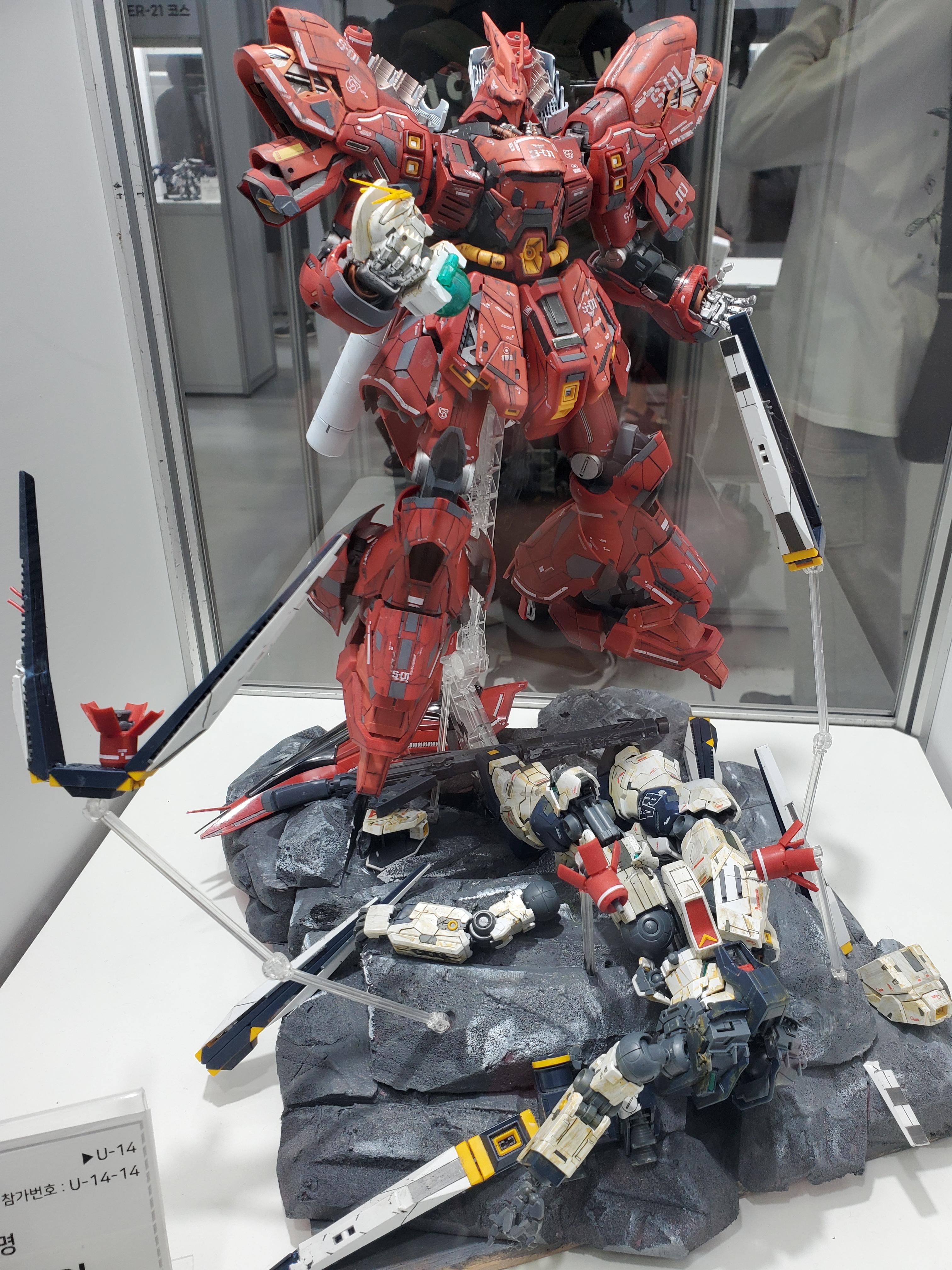조립도 다 잘했는데, 데칼은 윙제커만 붙어있네요 ㅋㅋㅋㅋ더블오는 맞는데... 각종 파츠를 다 때려박은 더블오네요 ㅋㅋㅋ애니의 한장면을 연출한듯한 세세한 디오라마.나이팅게일에 네오지옹 섞은거 같은데... 스케일이 ㄷㄷㄷ아이디어 굳. 윙제로인데 도색은 스노우 화이트 느낌. 거기에 날개는 데스사이즈 날개로 반은 악마로 표현. 거기에 꼬리는 에피온 히트로드 같네요.카툰 렌더링을 집어넣은 녀석들. 프라로 조립하고 먹선을 저렇게 넣으니까 진짜 신기하더군요 ㅋㅋㅋㅋ시난주 스타인 머리와 엑시아 몸...머리인데...어... 더 이상은 모르겠다 ㅋㅋㅋㅋ퀀터 풀세이버에 클리어 파츠를 이용해서 트랜스암을 쓰는걸 표현한 느낌. 다들 아이디어가 진짜 ㅎㄷㄷ 하네요.엑시아와 건담보다... 더 멋졌던건 주변 디오라마와 LED 조형이 진짜... 얘도 미쳤다는 말밖에 안나왔습니다.하이뉴가 갖고 있는 최고의 무장. 이거 게임에서 나온적이 있던가요???이클립스... 클리어가 나왔었나요??? 거기에 프리덤 날개??? 와... 이게 이렇게 조합이... 이클립스가 시드계통이니 백팩이 맞을거라고 생각은 했지만...