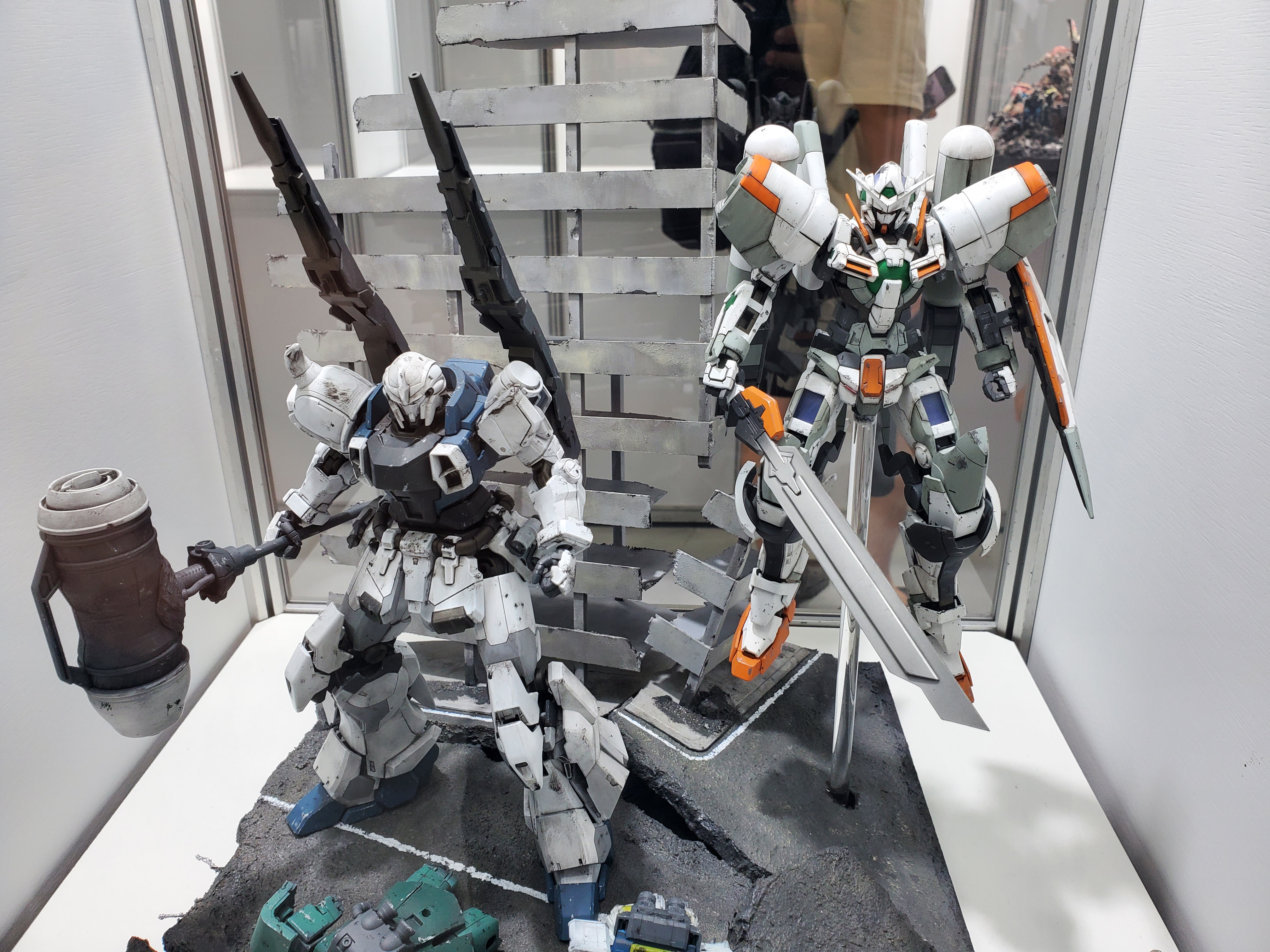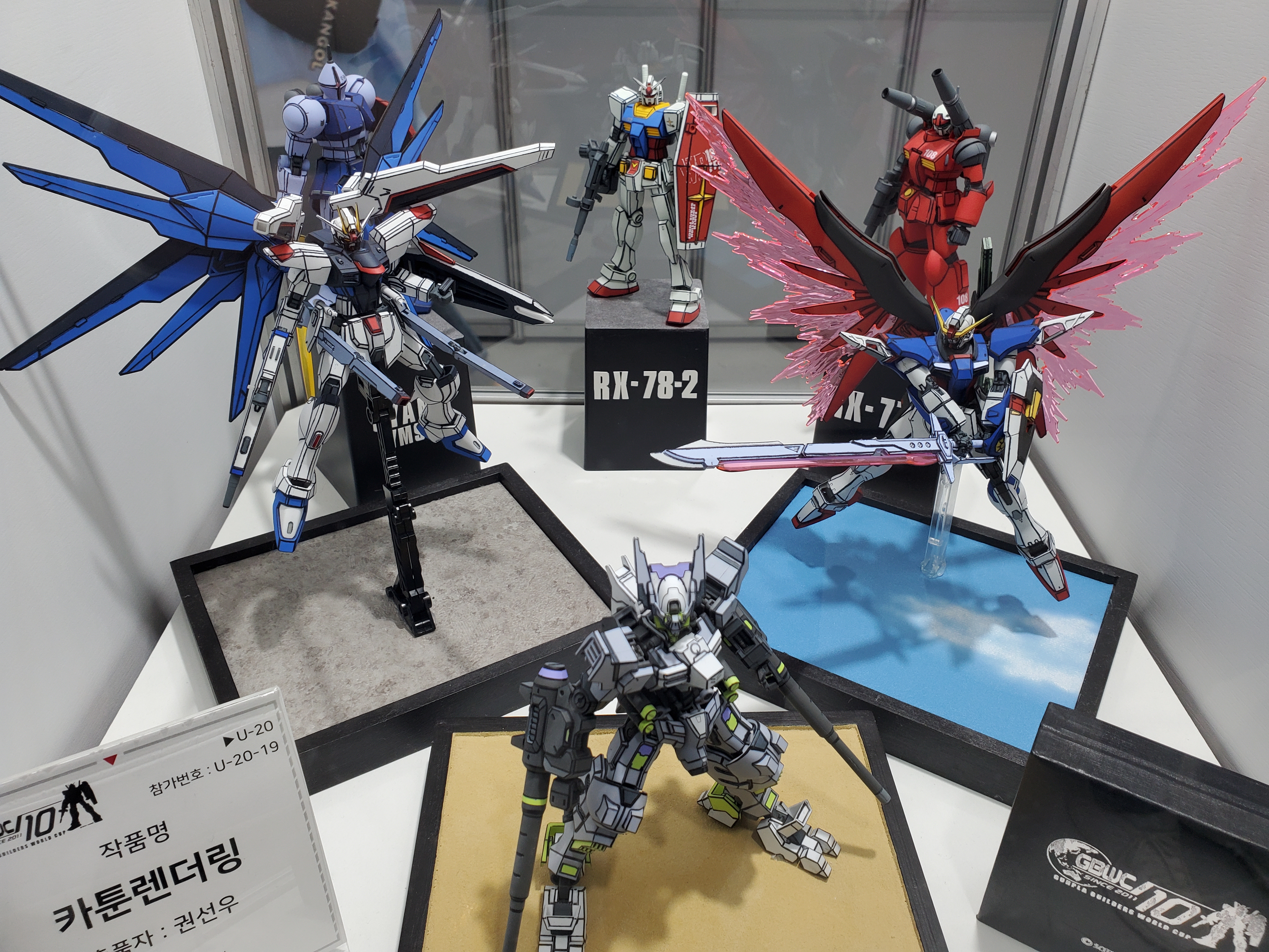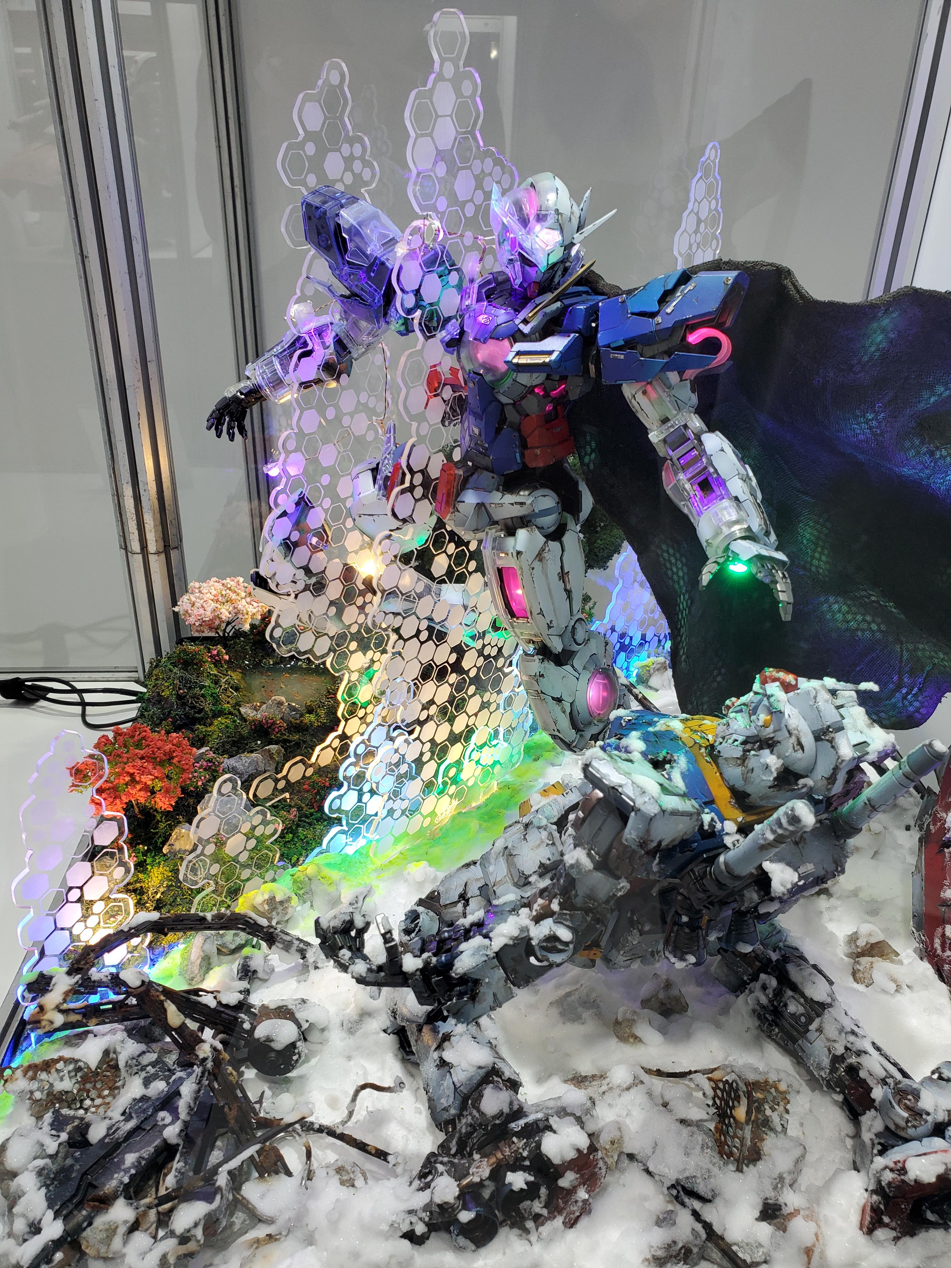 조립도 다 잘했는데, 데칼은 윙제커만 붙어있네요 ㅋㅋㅋㅋ더블오는 맞는데... 각종 파츠를 다 때려박은 더블오네요 ㅋㅋㅋ애니의 한장면을 연출한듯한 세세한 디오라마.나이팅게일에 네오지옹 섞은거 같은데... 스케일이 ㄷㄷㄷ아이디어 굳. 윙제로인데 도색은 스노우 화이트 느낌. 거기에 날개는 데스사이즈 날개로 반은 악마로 표현. 거기에 꼬리는 에피온 히트로드 같네요.카툰 렌더링을 집어넣은 녀석들. 프라로 조립하고 먹선을 저렇게 넣으니까 진짜 신기하더군요 ㅋㅋㅋㅋ시난주 스타인 머리와 엑시아 몸...머리인데...어... 더 이상은 모르겠다 ㅋㅋㅋㅋ퀀터 풀세이버에 클리어 파츠를 이용해서 트랜스암을 쓰는걸 표현한 느낌. 다들 아이디어가 진짜 ㅎㄷㄷ 하네요.엑시아와 건담보다... 더 멋졌던건 주변 디오라마와 LED 조형이 진짜... 얘도 미쳤다는 말밖에 안나왔습니다.하이뉴가 갖고 있는 최고의 무장. 이거 게임에서 나온적이 있던가요???이클립스... 클리어가 나왔었나요??? 거기에 프리덤 날개??? 와... 이게 이렇게 조합이... 이클립스가 시드계통이니 백팩이 맞을거라고 생각은 했지만...