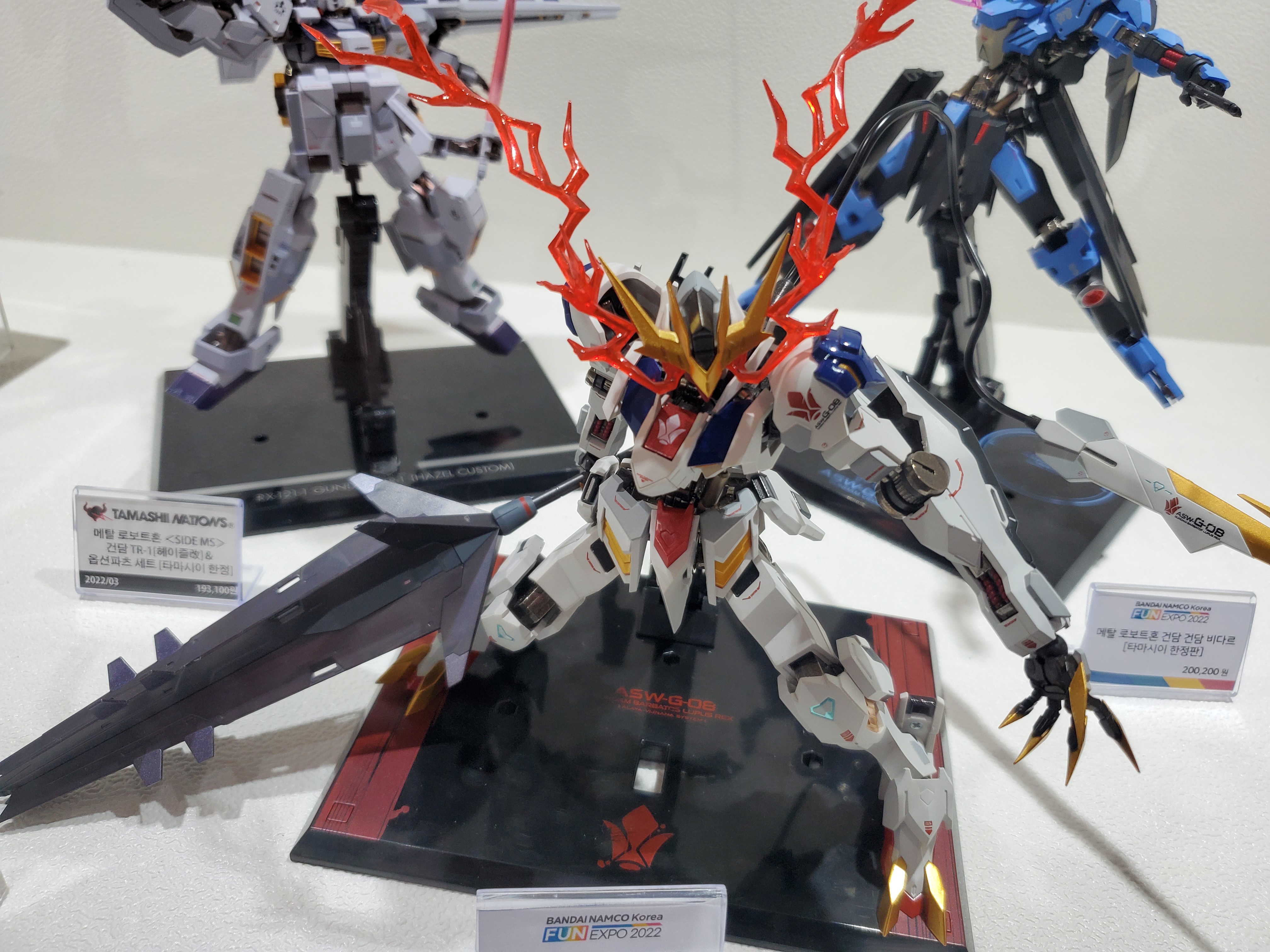 게슈도 있네요. 블랙홀 캐논 쏘는 연출이였으면 더 멋졌을거 같은데...류진마루?!?!? 국내명칭 씽씽캅이 프라로 있었습니다 ㅋㅋㅋㅋ뭐야 이 울트라맨은 ㅋㅋㅋㅋㅋㅋㅋㅋㅋㅋㅋㅋㅋㅋㅋㅋㅋㅋㅋㅋㅋㅋㅋㅋㅋㅋㅋㅋㅋㅋㅋㅋㅋㅋㅋㅋㅋ뭔지 모르는 녀석들. 풀메카닉스라고 하는데 처음 봅니다.역시 처음 보는 녀석들 투성메탈 스트럭쳐 뉴건담... 와... 미쳤다 진짜... 가격도 퀼리티도 진짜...진짜로 미친 퀼리티네요.이날 가장 많은 관심을 한몸에 받았다고 생각되는 녀석. 메탈 스트럭쳐 사자비.진짜 미친 퀼리티. 11월 판매인데도 이 녀석은 추첨을 통해서 한정 판매한다고 하더군요.