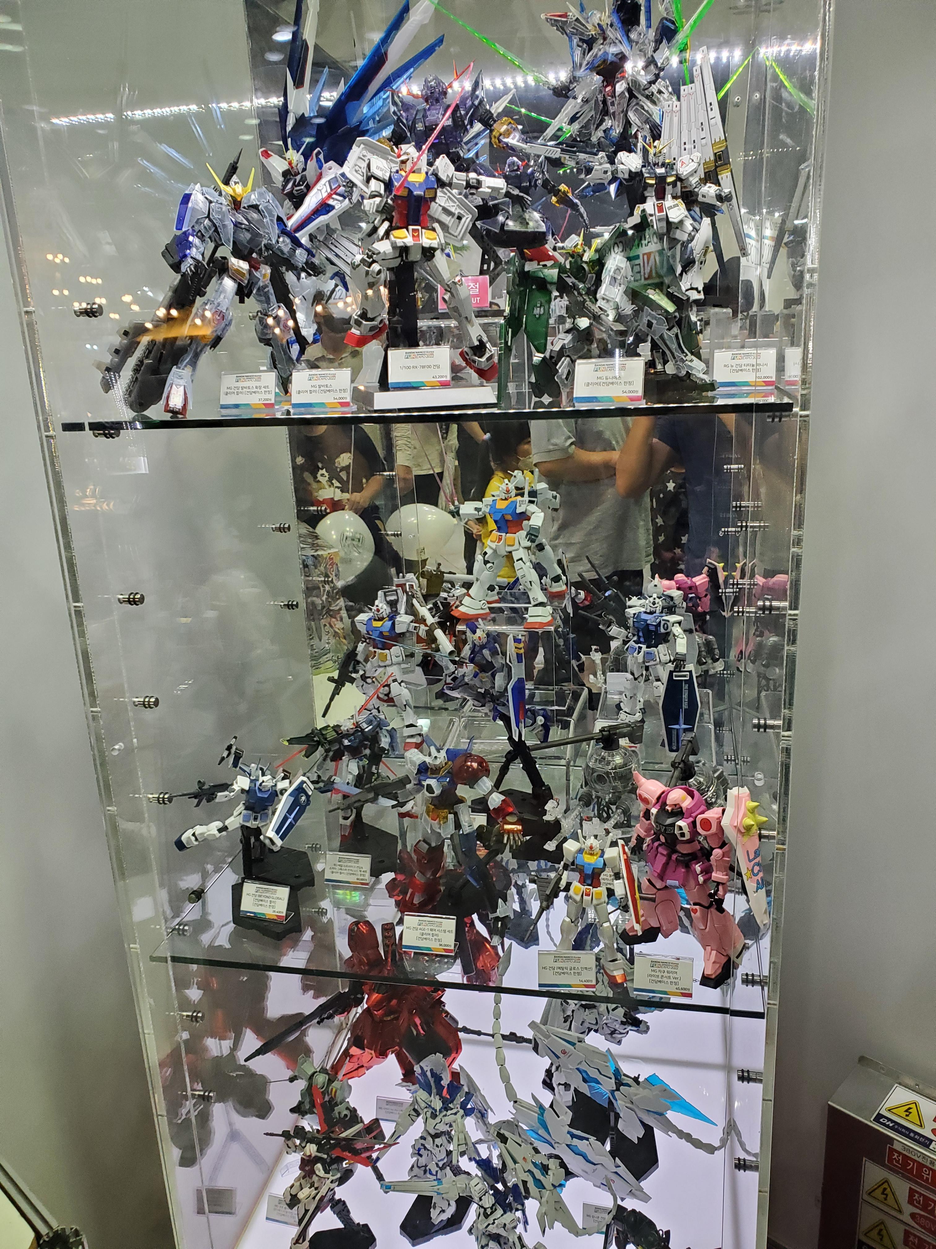 또 지나가다보니 초대형 포스터로 딱 붙여놓은 스트라이크 프리덤...딱 봐도 간지가 철철철 흘러 넘치는 스트라이크 프리덤입니다. 원작에 나오는 무장 기믹도 더 완벽하게 구현을 한 듯 하네요.MGEX 스트라이크 프리덤. 진짜 빛이 나네요... 크...천장의 조명을 받아 더욱 찬란하게 빛납니다. 와... 진짜 이쁘긴 합니다.살짝 조명 낮추고 다시 한컷. 그래도 이쁜건 변함이 없습니다.스트라이크 프리덤의 끝판왕 같습니다. 진짜... 와 소리밖에 안나오고 주변 사람들도 여기에 셔터가 집중되어 있더군요.스트라이크 프리덤 프레임인가 봅니다. 저기에 부품을 조립하는 것 같은데 조립 기술이 더욱 발전한게 눈에 확실히 띕니다.퍼스트 건담. 전 왠지 모르겠지만, 퍼스트 건담에는 정이 안갑니다. 안이뻐서 그런가-_-;이번 엑스포에서만 파는 한정판 녀석들. 상품의 일부를 에코프라로 쓰는 녀석이라고 합니다.역시 이번 엑스포 한정판. 클리어 파츠 녀석들은 정이 안가요. 이쁘질 않아...여기도 클리어가 반... 뉴건은 조금 나은 것 같지만 그래도... 아...발바토스는 확실히 이뻐 보이는 메탈 컬러입니다. 근데 그 밑에 키티는... 어... 자쿠 키티랑 건담 키티?! ㅋㅋ사이코 자쿠, 선더볼트, 그리고 결정 유니콘.이번 엑스포 한정판 퍼펙트 스트라이크와 그리고 앞으로 팔 예정? 으로 보이는 아스트레이 레드드래곤입니다.