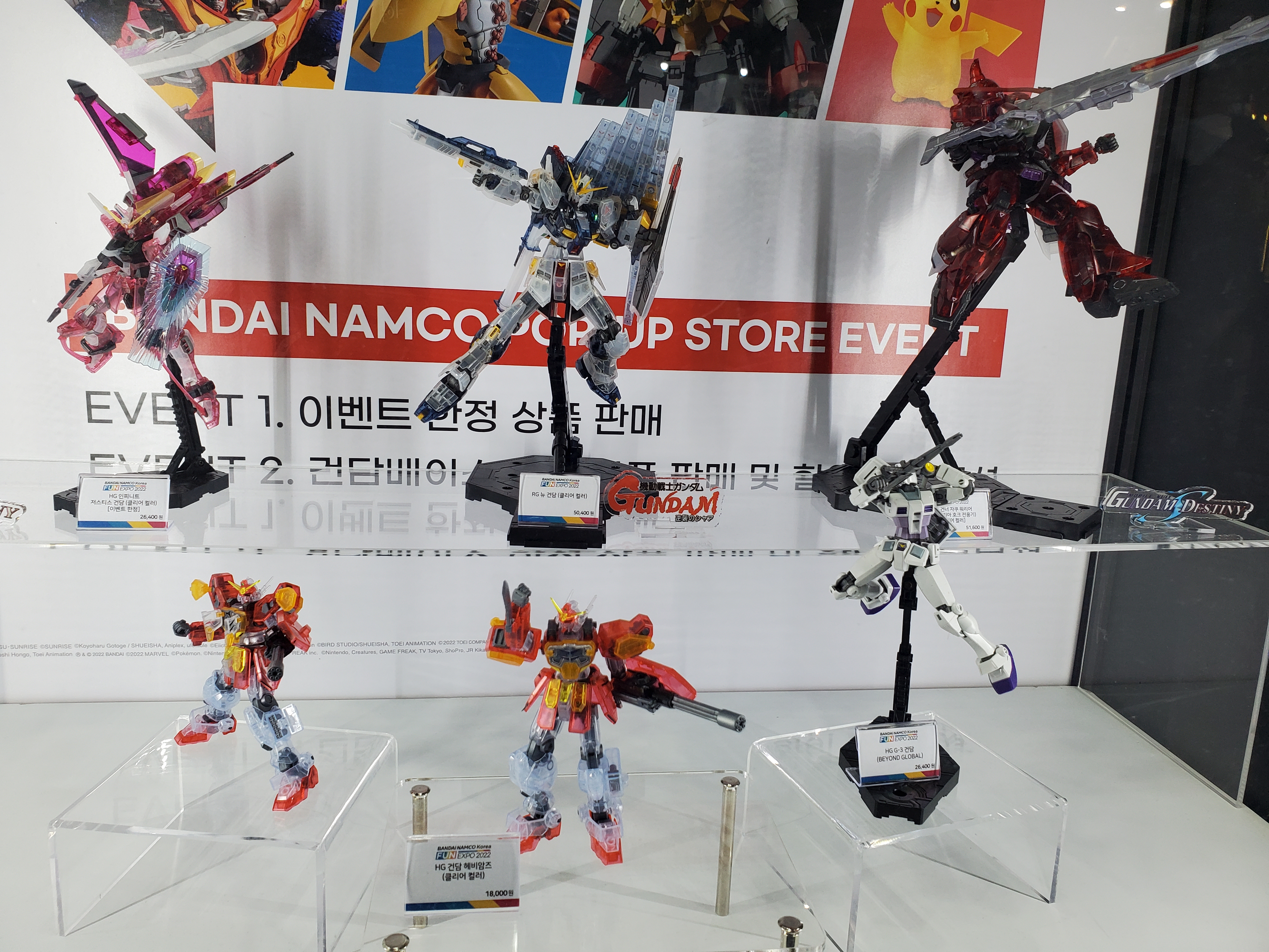 이번에 나오는 신작이라고 합니다. 디자인이 딱히 제 스타일은 아닌지라 그냥 흘려 보고 지나갔습니다.포켓몬도 있더라구요? ㅋㅋㅋ 아이들이 매우 좋아했었습니다 ㅋㅋㅋ포켓 프라...??? 10분??? 딱 봐도 유아용으로 생각됩니다.MGEX 2탄. 사상 최고봉의 금속표현. 그리고 스트라이크프리덤.... 크...