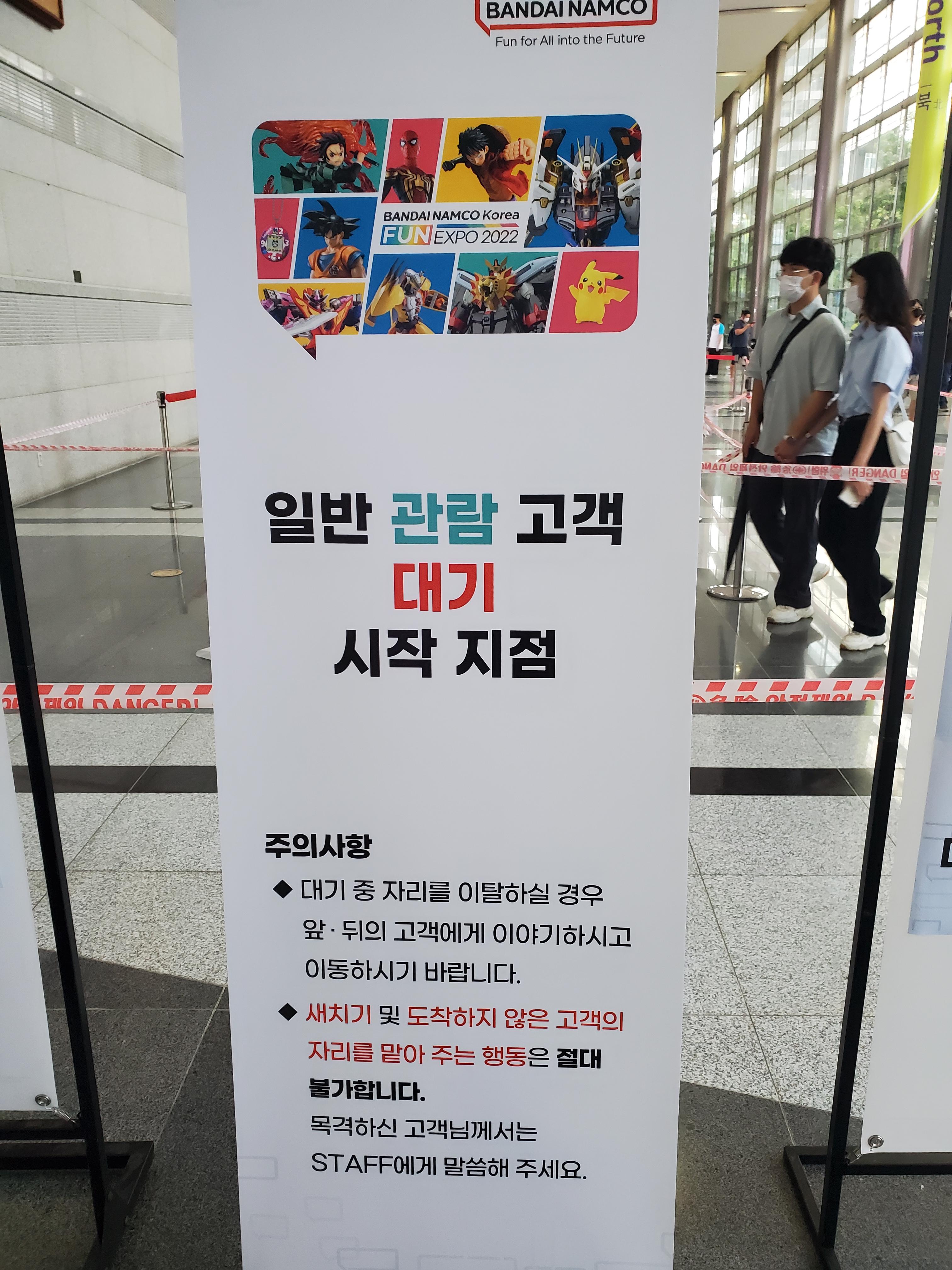 일반 관람 대기 시작지점이라고 했는데, 딱히 대기가 없어서 쭉 들어갔습니다. 아! 저는 4시쯤 입장했어요.반다이 남코 코리아. 건담 좋아하는 사람들을 환장하게 하는 그 이름...