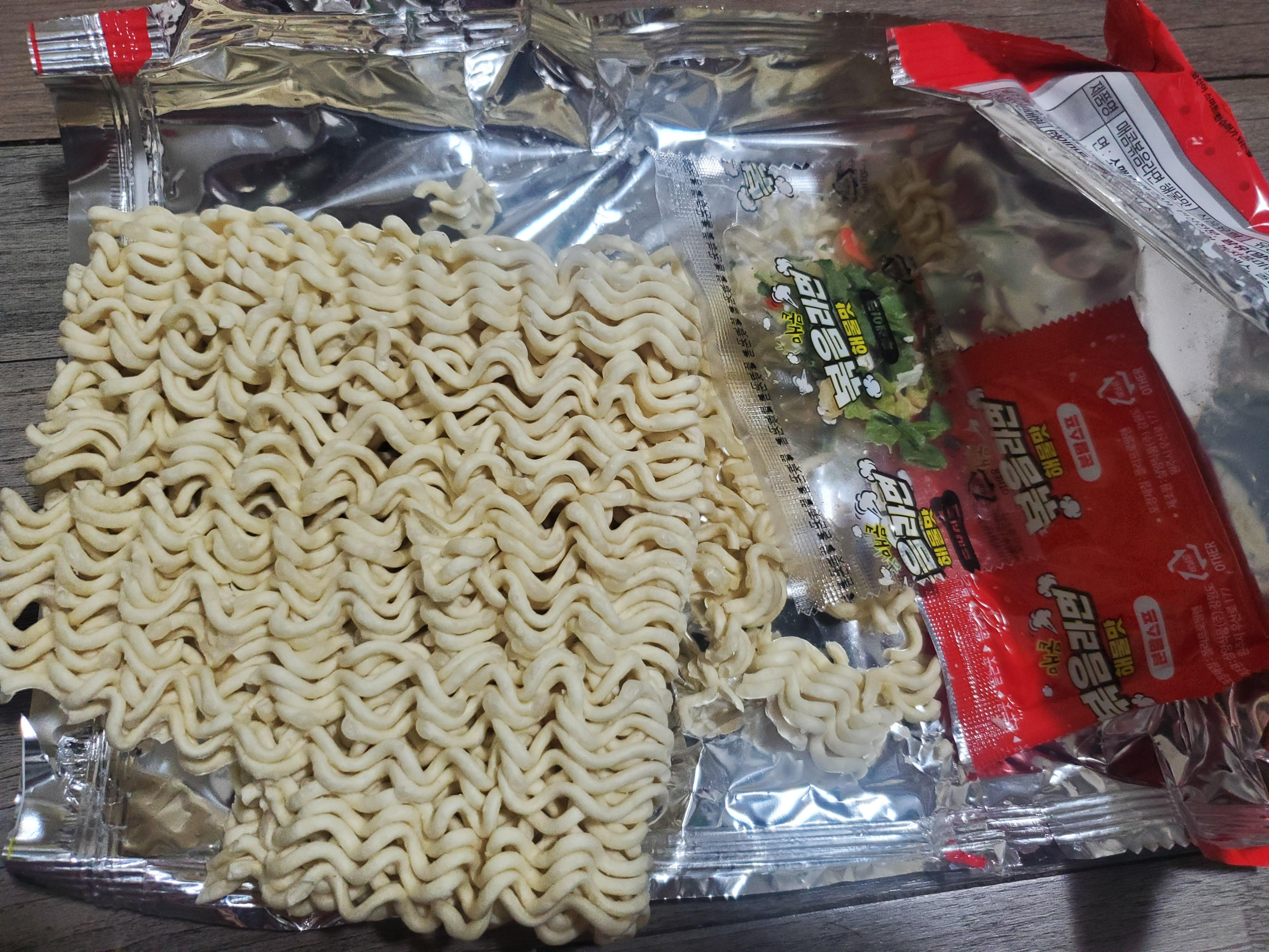 말 그대로 오뚜기의 김치라면과 육개장 컵라면을 같이 하나로 묶은 볶음면?!